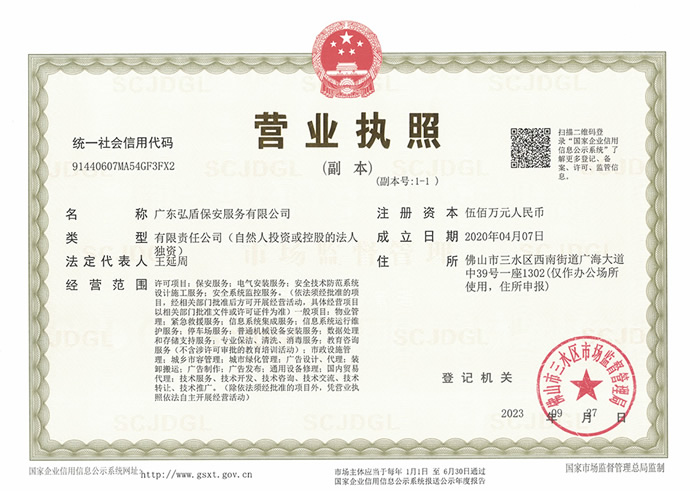 • 弘盾保安總公司營業執照